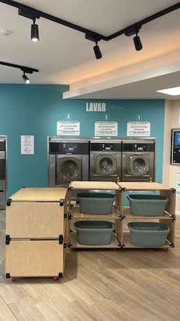 Design, fabrico e instalação de mobiliário comercial em contraplacado de bétula + conexões especiais em plástico para a lavandaria Aromatic, no Porto.